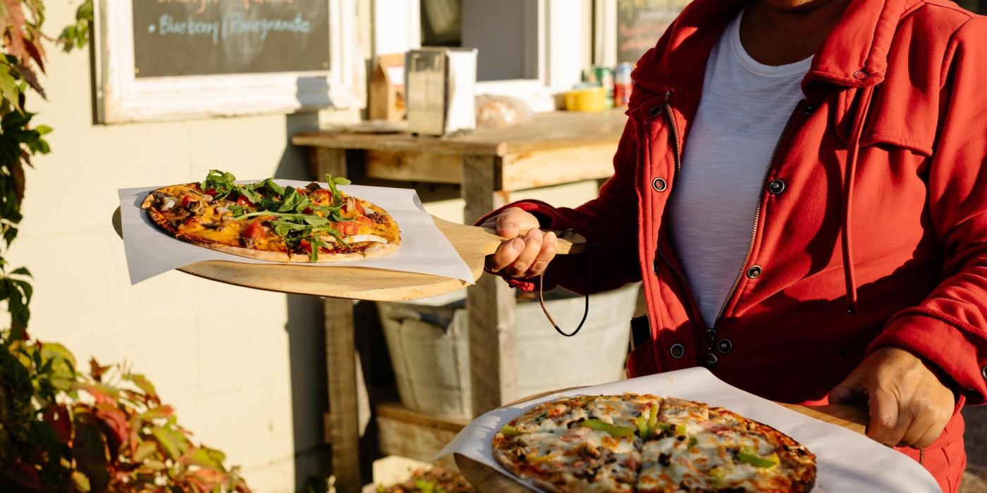 De juin à septembre, venez déguster des pizzas dans la cour, préparées dans leur four à bois en plein air. Fidèles à leur philosophie « du champ à l'assiette », les propriétaires Jenny et Michael Dupas vous proposent des ingrédients locaux pour composer votre propre pizza : du fromage de Bothwell, de la viande d'Archie's, des légumes de saison issus des jardins locaux et des pâtes à pizza préparées à partir de céréales locales.