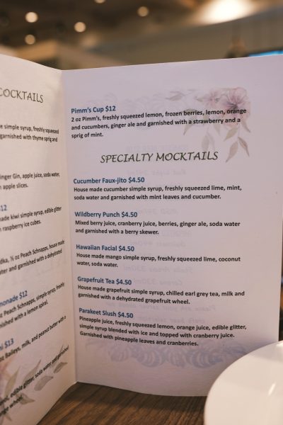 Une chose que nous avons vraiment appréciée à propos de leur menu est que, bien que leur offre de cocktails soit vaste, ils ont également une liste de mocktails tout aussi longue avec des prix très raisonnables - nous parlons de 4,50 $ par boisson ! Comme nous participions tous les deux au Dry January, nous avons opté pour deux de leurs mocktails et avons été extrêmement impressionnés par leur saveur et leur présentation.