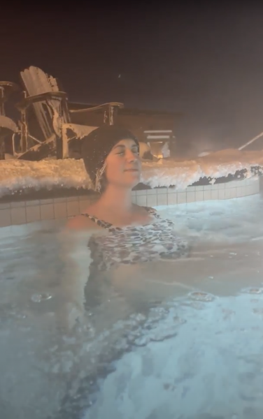 Après la piscine chaude, nous avons passé du temps dans le pavillon de relaxation où nous nous sommes servis un thé gratuit et avons passé un moment tranquille au coin du feu. Grâce à la température extrêmement froide à l'extérieur et à la condensation provenant des piscines chaudes, les arbres étaient joliment recouverts de neige et de glace et constituaient le décor parfait d'une journée hivernale au spa