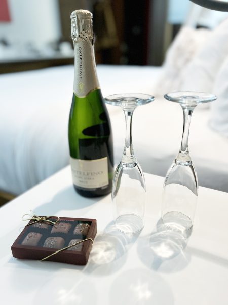 Pour rendre votre séjour encore plus spécial, réservez le forfait Saint-Valentin (disponible du 1er au 28 février 2025) et profitez d'un vin pétillant, de chocolats salés et d'un départ tardif. Après tout, février est définitivement le mois de la romance !