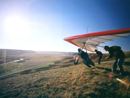 Réservez votre vol pour faire un SkyRide pittoresque à bord d'un deltaplane ultraléger au-dessus des prairies du Manitoba ! Vous recevrez également une leçon de pilotage lors de la séance d'information au sol et pourrez, si vous le souhaitez, prendre les commandes dans les airs. Des forfaits de leçons complètes sont offerts afin que vous puissiez devenir un pilote breveté d'un ultra-léger, d'un bateau volant, d'une motoneige volante ou d'un deltaplane. Téléphonez à Barry au 204-333-9464 pour réserver votre aventure en altitude tout au long de l'année !