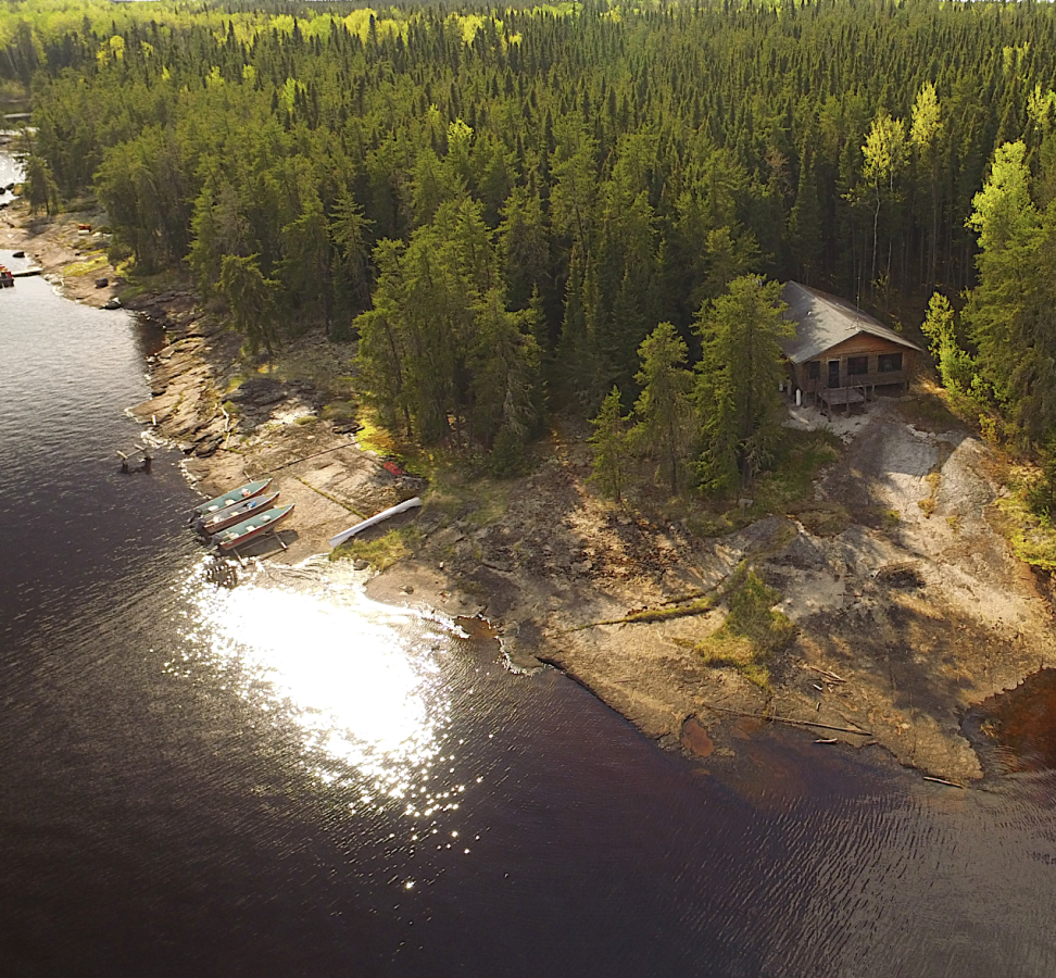Lodge principal avec quatre unités et trois salles de bains centrales avec douches.