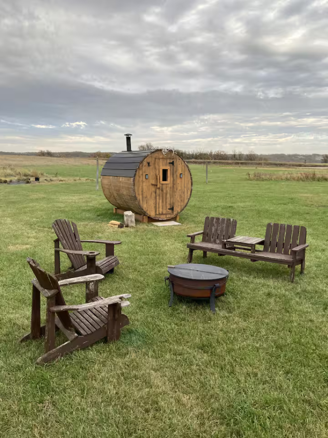 Featherstone Farm Cabin - Hot Tub - Wood Burning Cedar Sauna - Sleeps 6 Pembina Valley - just 20 min from Morden & 30 min from Winkler Bookings open October 14 Book your stay : airbnb.com/h/featherstonecabin Instagram @featherstone_farm Escape to a cozy retreat in nature - perfect for birthdays, anniversaries, holidays, family getaways, couples' weekends, or relaxing with friends. Points forts de la cabane - 4 à 6 personnes - 1 lit King + 2 lits doubles (loft) - Salle de bain complète de 3 pièces - Cuisine entièrement équipée - Lave-linge et sèche-linge - Wi-Fi inclus - Bain à remous privé et sauna en cèdre chauffé au bois pour une relaxation ultime - Animaux sur place - 2 chèvres, un cheval, 3 chats et des poulets en liberté - Une piste de motoneige damée passe à côté de la propriété Tarifs - 180 $ / nuit (en semaine) - 200 $ / nuit (le week-end) - 50 $ de frais de nettoyage par séjour Occupation maximale : 6 personnes Réservez directement via Airbnb.