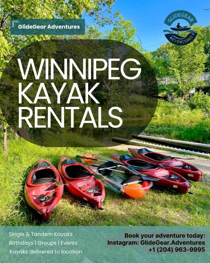 GlideGear Adventures propose des locations de kayaks pratiques et abordables à Winnipeg et dans ses environs. Nous facilitons l'accès aux voies navigables du Manitoba. Lorsque vous réservez avec nous, nous avons tout préparé et installé à la rivière. Vous n'avez qu'à vous présenter et à pagayer !
