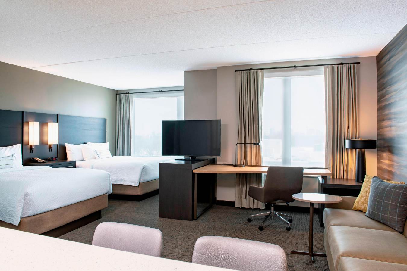 Retrouvez le confort lors de votre séjour prolongé au tout nouveau Residence Inn Winnipeg. Trouver quelque chose pour occuper votre temps ne pourrait pas être plus facile, car notre hôtel est situé à proximité de nombreuses destinations importantes, y compris Bell MTS Place, le centre-ville de Winnipeg et l'aéroport international James Armstrong Richardson de Winnipeg. Des aventures supplémentaires attendent toute la famille dans notre parc aquatique intérieur, qui comprend une piscine, un toboggan, un bain à remous et plusieurs jeux d'eau. Des créneaux horaires d'une heure peuvent être réservés auprès de nos agents du service clientèle. Le matin, un petit déjeuner gratuit est servi dans le hall de l'hôtel. Tout au long de la journée, le Lounge204 offre une ambiance relaxante pour savourer un délicieux repas et des cocktails artisanaux. Vous pouvez terminer votre soirée dans nos suites spacieuses. Que vous souhaitiez préparer un repas dans une kitchenette complète, vous détendre devant une télévision à écran plat ou laisser la nuit s'écouler sur une literie moelleuse, vous trouverez exactement ce dont vous avez besoin dans nos hébergements.