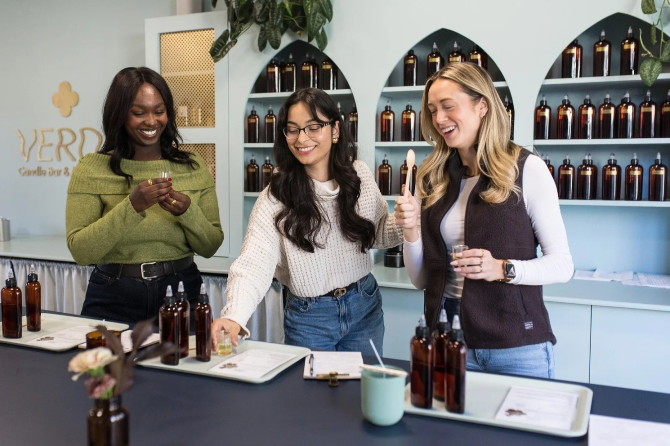 Verde Candle Bar : Créer des souvenirs grâce aux senteurs Fondé en 2014, Verde Candle Bar est une expérience interactive de mélange de senteurs basée à Winnipeg. Depuis plus de 11 ans, nous donnons des ateliers créatifs à des milliers de personnes. L'expérience : Fabriquer une bougie parfumée personnalisée. Au cours d'une séance de 75 minutes, les participants créent leur propre bougie parfumée, leur propre vaporisateur d'ambiance ou leur propre diffuseur à anche. Notre vaste bibliothèque de senteurs comprend plus de 45 fragrances propres, auxquelles s'ajoutent des senteurs saisonnières en rotation, ce qui nous permet de répondre à toutes les préférences. De l'exotique et du fruité au terreux et au floral, notre collection soigneusement sélectionnée permet des combinaisons créatives à l'infini. L'expérience ne se limite pas à la fabrication d'une bougie ; elle est synonyme de découverte, de créativité et de création de souvenirs durables. Les clients sélectionnent leurs senteurs préférées, expérimentent les mélanges et créent une bougie qui leur est propre. Le résultat est un objet personnalisé qui capture leur créativité et devient un souvenir tangible. Notre expertise : Nous comprenons la psychologie des senteurs et le lien puissant qui existe entre le parfum et la mémoire. Nous avons réussi à créer des expériences pour : Des réunions d'équipe d'entreprise Des soirées en amoureux et des célébrations Des fêtes d'anniversaire et des enterrements de vie de jeune fille Des ateliers de groupe sur mesure Ce que nous offrons : En plus de nos expériences en studio, nous proposons des ateliers portables, des kits de bricolage et le développement de parfums personnalisés pour des occasions spéciales. Nous sommes passionnés par le partage de nos connaissances et la création d'espaces accueillants où des souvenirs sont créés grâce à la créativité pratique.