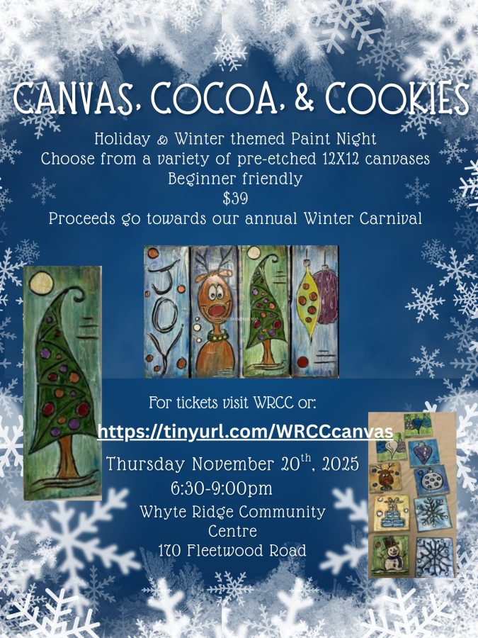 Sous la direction de Patti Fernie de Lake Gal Artworks, choisissez parmi une variété de toiles 12x12 pré-gravées et apprenez à utiliser la couleur, la texture et la technique pour créer votre propre chef-d'œuvre sur le thème des vacances ou de l'hiver.