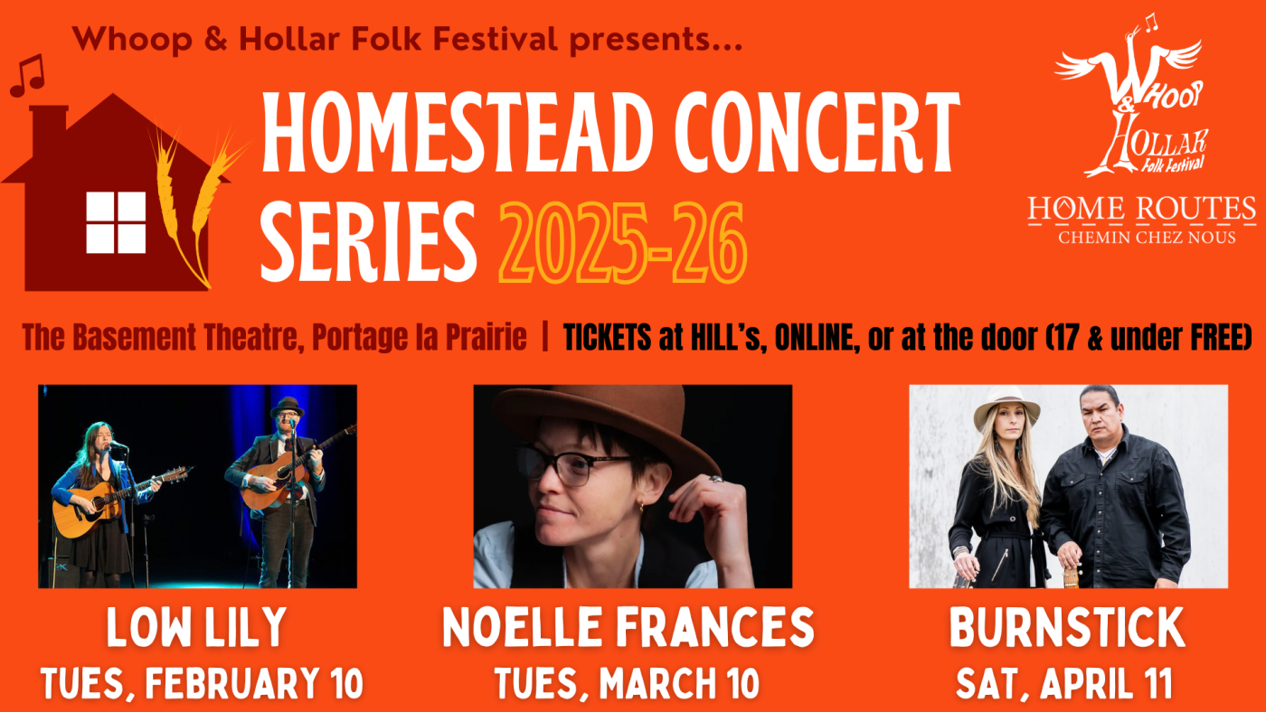 La série de concerts HOMESTEAD CONCERT SERIES revient cet automne et cet hiver, fièrement présentée par le Whoop & Hollar Folk Festival.