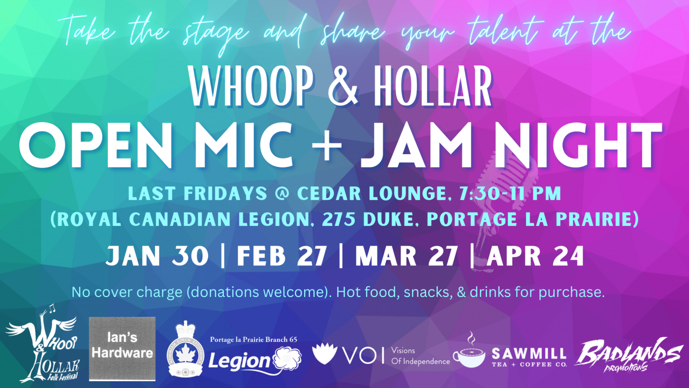 Le Whoop & Hollar Folk Festival présente la série Open Mic & Jam Night, qui revient pour sa 7e saison (hiver 2026)...