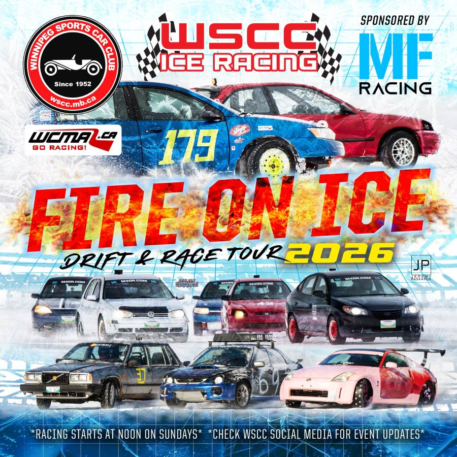 Le Winnipeg Sports Car Club « Fire on Ice » Drift & Race Tour 2026 est de retour les 21 et 22 février au Lake Shirley Ski Pond !