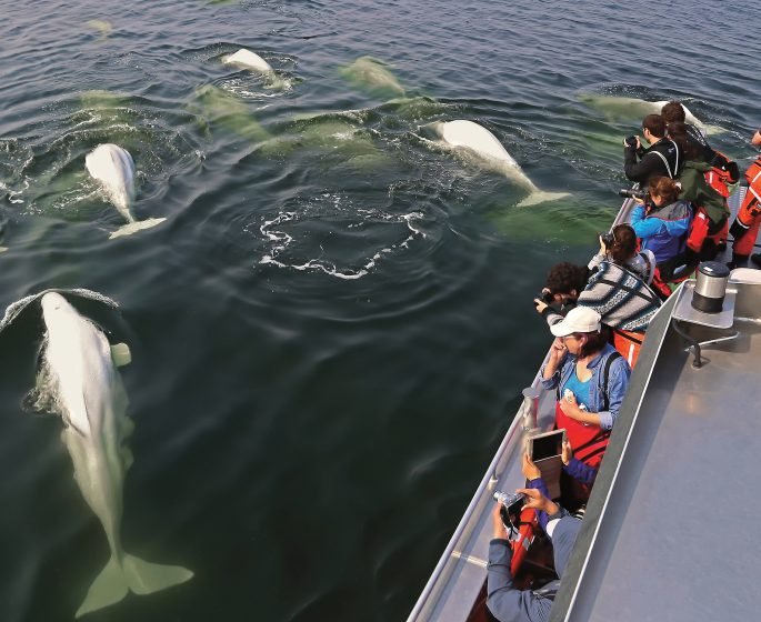 Venez entendre les cris et les chants des bélugas à bord d’un bateau équipé d’un hydrophone submersible.